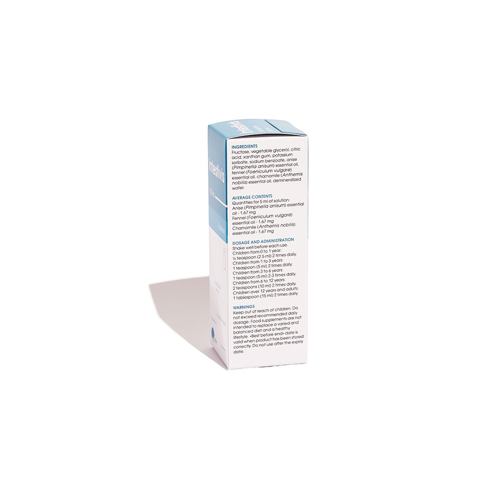 Është një produkt me origjinë bimore që lehtëson fryrjen. Nëpërmjet kombinimit të tre vajrave esencialë, anisit, koprës dhe kamomilit i cili përmirëson tretjen, ndihmon në eliminimin e spazmave të zorrëve, redukton fryrjen dhe kapsllëkun, si dhe stimulon oreksin. Është vërtetuar se përbërësit aktivë të secilit prej këtyre vajrave esencialë kanë efekt laksativ të moderuar dhe nxisin normalizimin e peristaltikës së traktit gastrointestinal.
