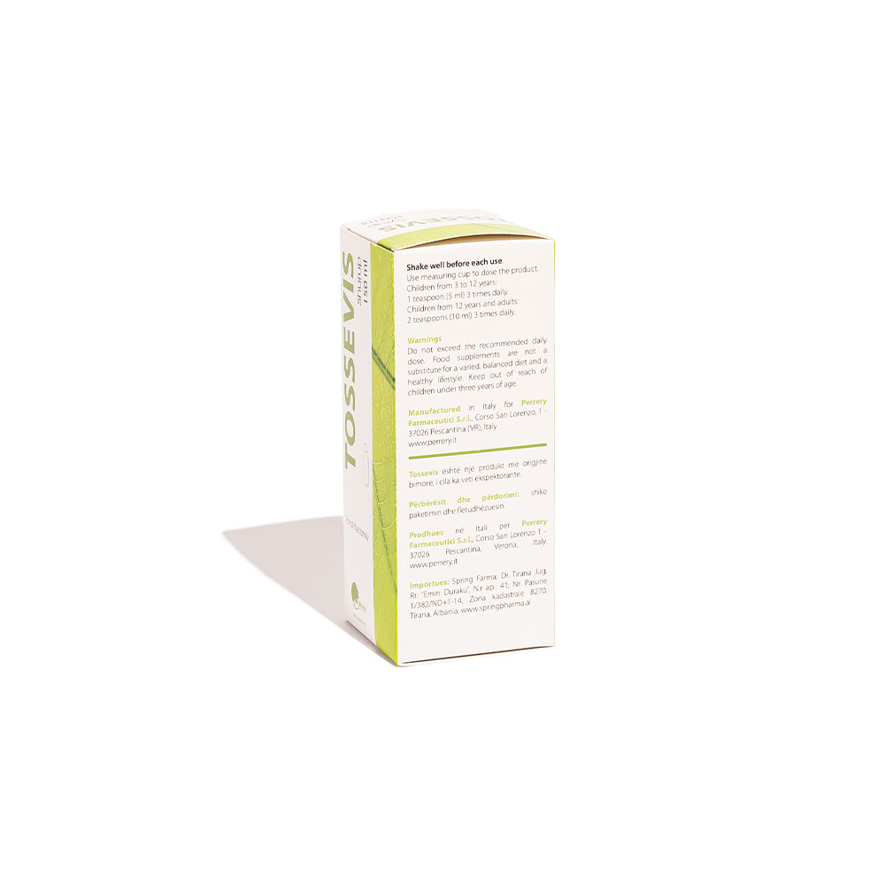 Tossevis është një suplement ushqimor me bazë ekstrakte bimore të dredhkës (Hedera helix), Grindelia-s (Grindelia robusta), hedge mustard (Sisymbrium officinale), lulëkuqes (Papaver rhoeas) dhe ribesit të zi (Ribes nigrum), që ndihmojnë në ruajtjen e gjendjes fiziologjike të traktit të frymëmarrjes dhe në lehtësimin e kollës gjatë afeksioneve respiratore.